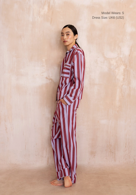 Cotton Pyjamas - Rosa & Burgunder Stripe